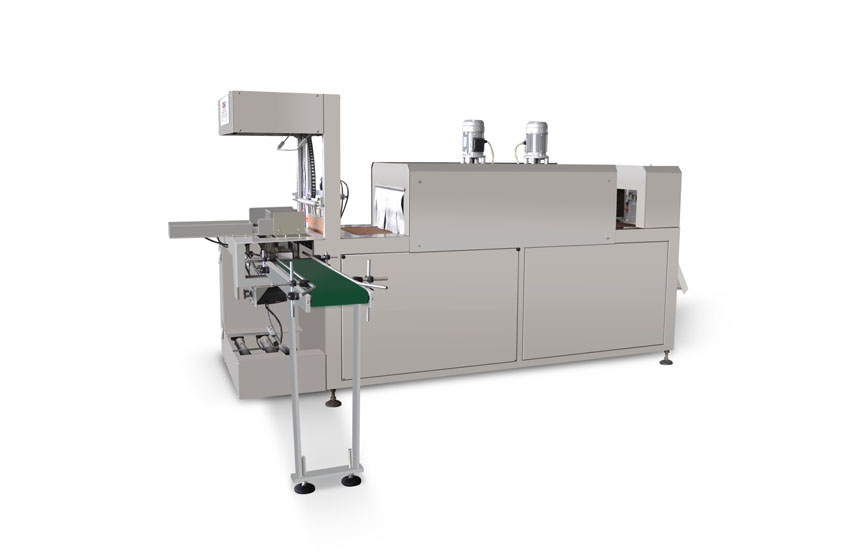2-1、袖口式热收缩包装机,是我公司自主开发研制的新型包装机。整机均由优质钢材或不锈钢精工制造,结构紧凑合理,经久耐用,节能效果显著。具有自主知识产权的新型收缩膜自动包装机,广泛适用于饮料,食品、医药化工用品等组合包装。不用底托、无需纸箱,无论方形、圆形、扁形均可包装完美,直观效果甚佳,包装成本低廉。本机采用新颖优化设计,采用PLC自动控制,人机界面跟踪,光纤定位准确。次包进入状态,杜绝缺瓶、倒瓶、调节灵活,安全美观。可调热风循环结构,适用现有各种热缩膜(含彩印),薄膜更换快速简便,故障警示,止锁齐全,运行可靠。从而为质量恒定,平稳可靠,长时间连续生产提供了坚实的保证。
